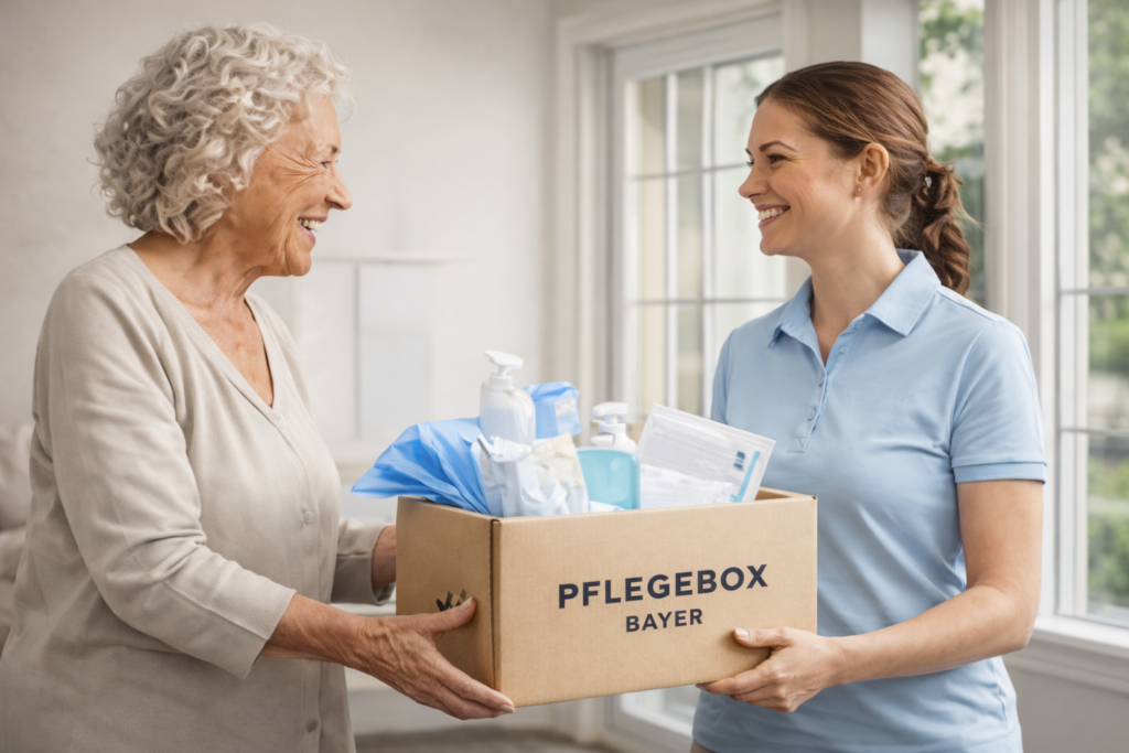 Mit der Pflegebox Bayer erhalten Pflegebedürftige jeden Monat kostenlose Pflegehilfsmittel im Wert von bis zu 42 € – vollständig von der Pflegekasse übernommen. Wir übernehmen Antrag, Abwicklung und Versand, Sie wählen nur die passenden Produkte aus.